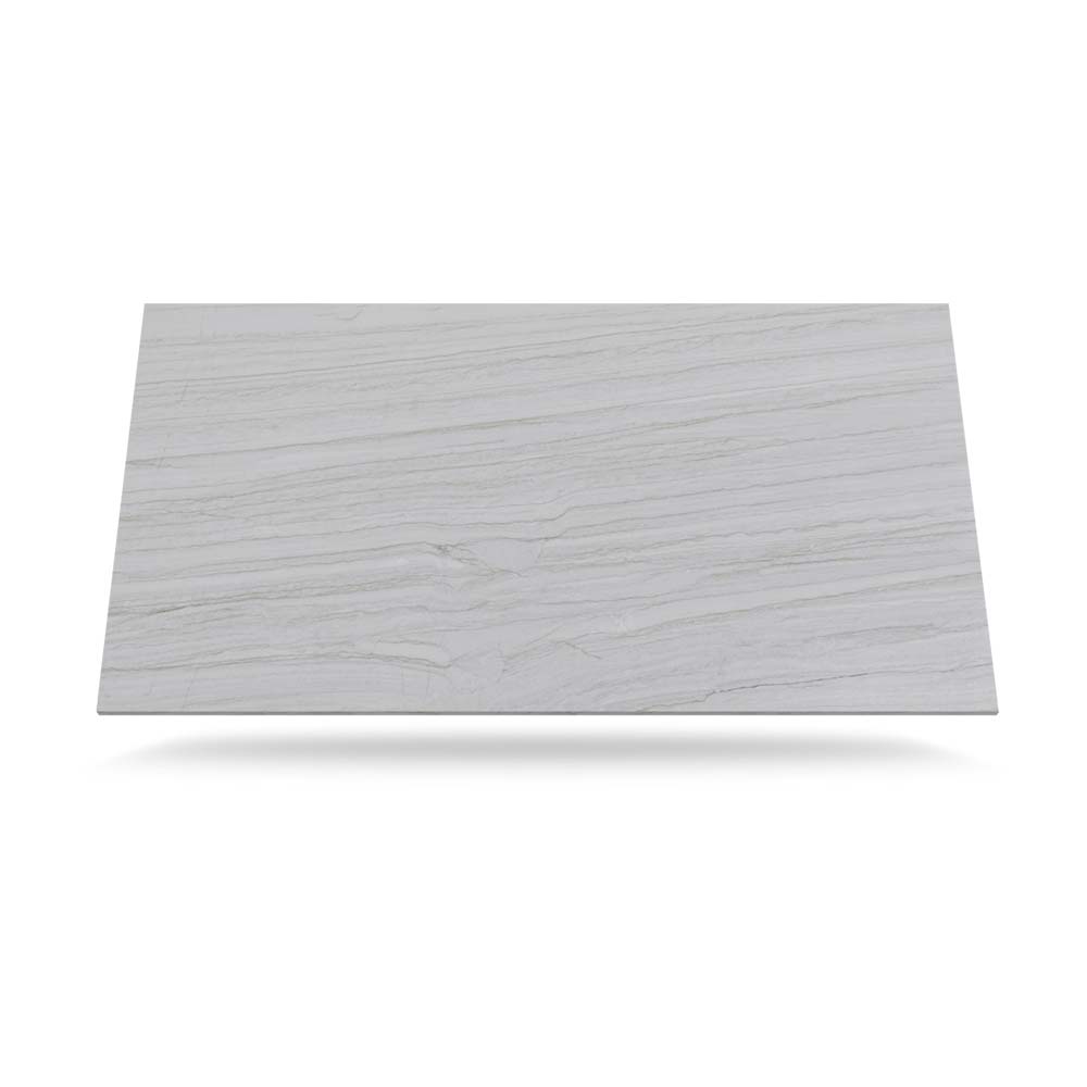 White Macaubas: Cuarcita brasileña con fondo claro marcado finas y lineales vetas grises.