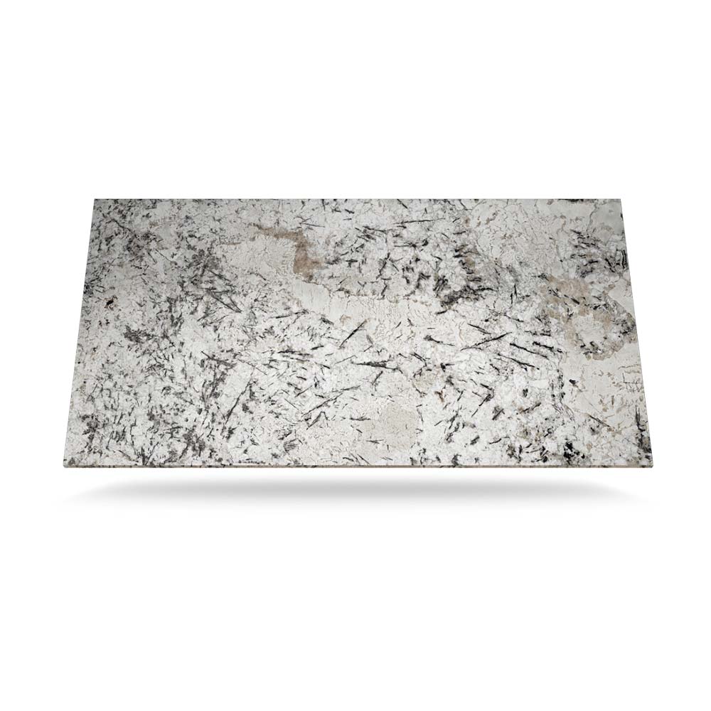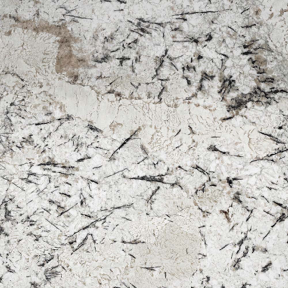 Ice Blue: granito brasileño con textura pulida, que cuenta con un sorprendente fondo blanco, algo muy difícil de encontrar en este tipo de material. Los enclaves negros junto a las vetas en color crema o tostado, ofrecen en su conjunto un diseño seductor y salvaje en su apariencia final.